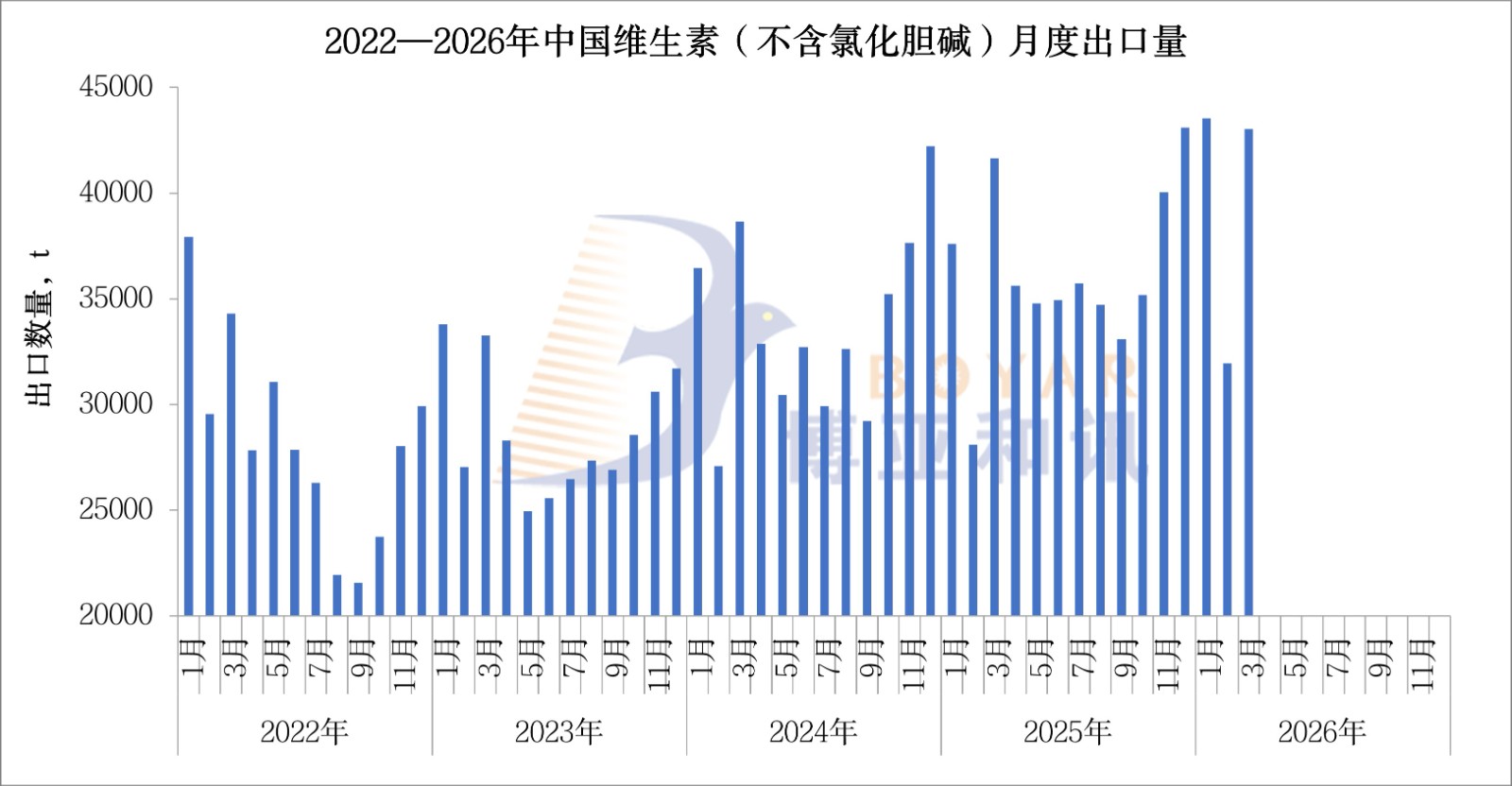 【BOYAR观察】2026年1~3月维生素出口同比增长10.42%