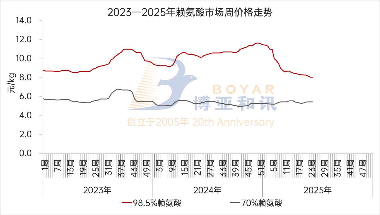 2023-2025年赖氨酸市场周价格走势-24