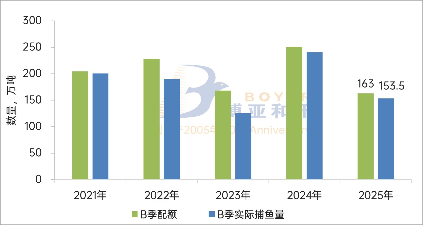 2021-2025年秘鲁中北部B季捕鱼配额及捕捞情况