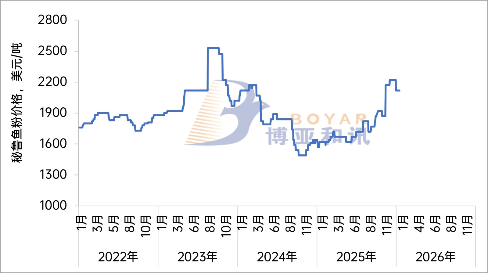 2022-2026年秘鲁超级蒸汽鱼粉FOB价走势-2周